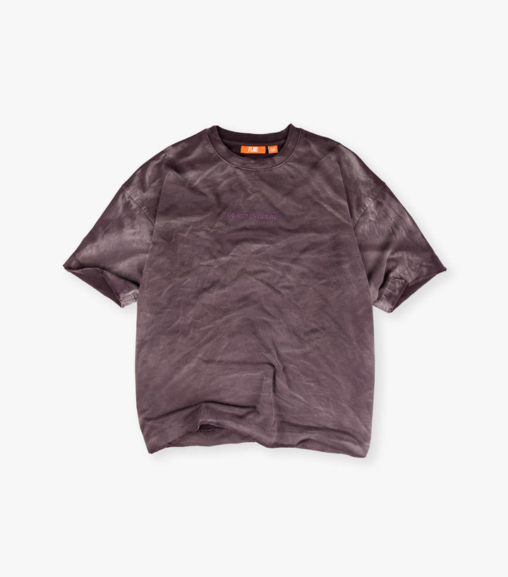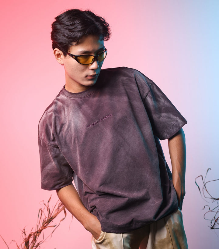 Presenting the Mauve Washed Basic Oversized T-shirt - A premium oversized tee crafted from heavy 100% cotton, featuring FLWD’s signature washed finish for a lived-in, artful effect. Designed with rugged details on the collar, hems, and sleeves, this piece embodies raw sophistication and everyday luxury. The front showcases the subtle “Object of Desire” embroidery, while the back neck carries the understated FLWD logo, completing its refined yet edgy aesthetic.